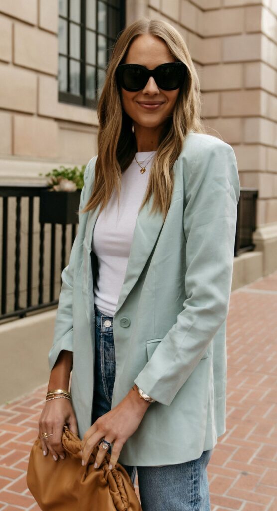 • Cómo usarlo: En un blazer de lino o un sweater de punto fino. Combínalo con blanco para un look de «dueña de una galería de arte en la costa».