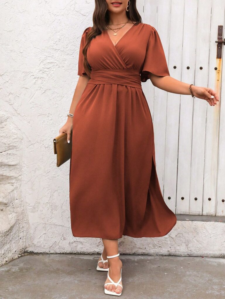 Estos son tus mejores aliados. Los vestidos o blusas que se ajustan justo debajo del busto (la parte más estrecha del torso) y luego caen con fluidez, crean una línea continua que no marca la zona del abdomen.